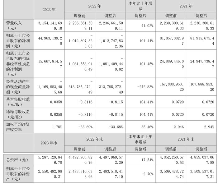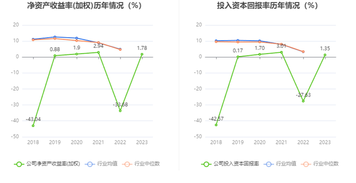 数据显示,2023年公司加权平均净资产收益率为1.78%,较上年同期增长35.46个百分点;公司2023年投入资本回报率为1.35%,较上年同期增长28.98个百分点。