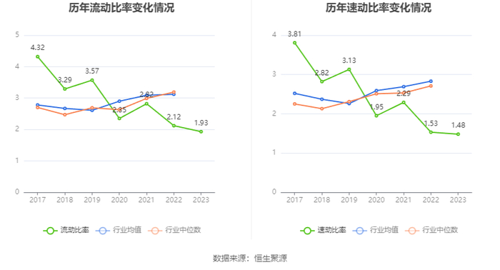 2023年,公司流动比率为1.93,速动比率为1.48。