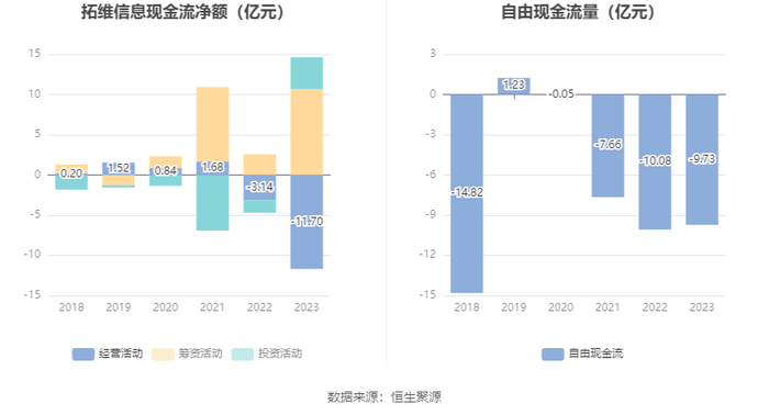 进一步统计发现,2023年公司自由现金流为-9.73亿元,上年同期为-10.08亿元。