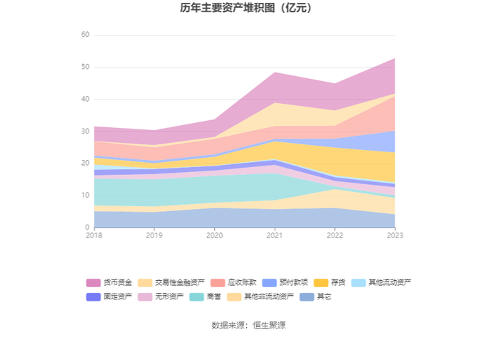 资产重大变化方面,截至2023年年末,公司应收账款较上年末增加167.46%,占公司总资产比重上升11.48个百分点;交易性金融资产较上年末减少83.91%,占公司总资产比重下降9.07个百分点;预付款项较上年末增加143.01%,占公司总资产比重上升6.62个百分点;其他非流动资产较上年末减少12.80%,占公司总资产比重下降3.35个百分点。