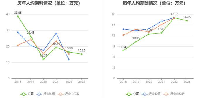 截至2023年末,公司员工总数为8540人,人均创收158.22万元,人均创利15.23万元,人均薪酬16.25万元,较上年同期分别变化21.14%、-8.16%、-4.82%。