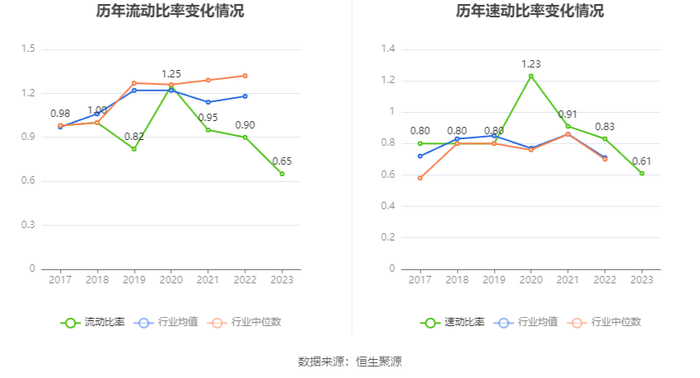 2023年,公司流动比率为0.65,速动比率为0.61。