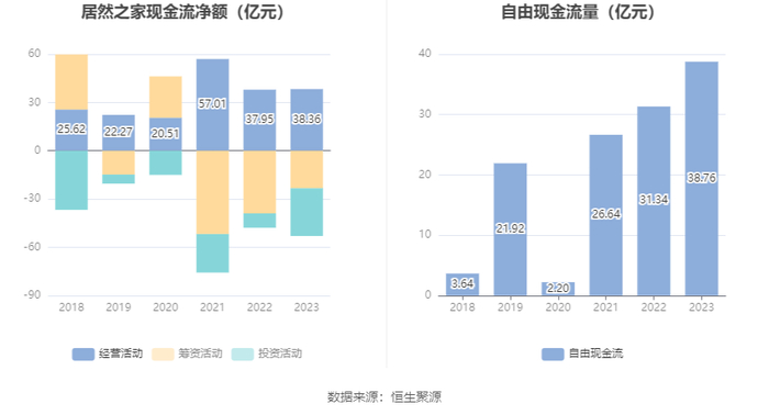 进一步统计发现,2023年公司自由现金流为38.76亿元,相比上年同期增长23.69%。
