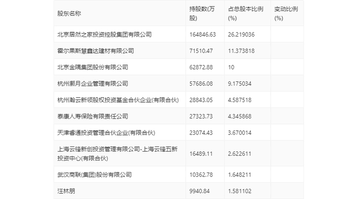 年报显示,2023年年末公司十大流通股东中,新进股东为北京金隅集团股份有限公司、杭州灏月企业管理有限公司、汪林朋,取代了三季度末的阿里巴巴(中国)网络技术有限公司、全国社保基金一一四组合、中意资管-工商银行-中意资产-卓越非凡23号资产管理产品。在具体持股比例上,北京居然之家投资控股集团有限公司持股有所下降。