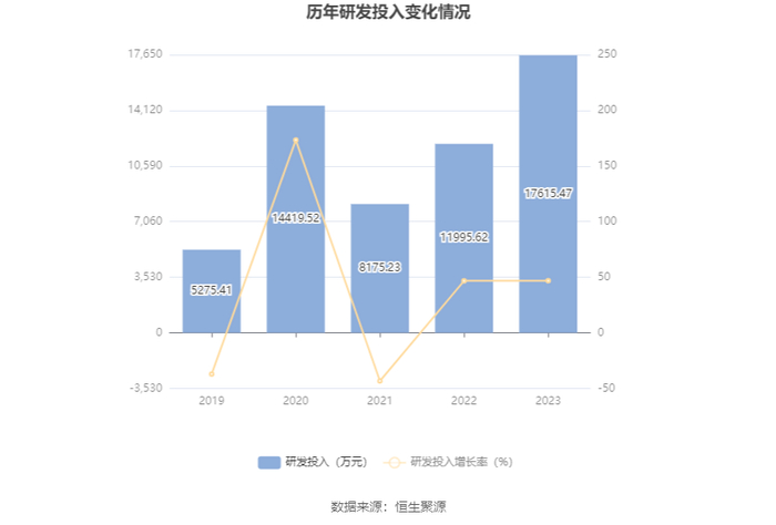 2023年全年,公司研发投入金额为1.76亿元,同比增长46.85%;研发投入占营业收入比例为1.30%,相比上年同期上升0.38个百分点。此外,公司全年研发投入资本化率为77.73%。