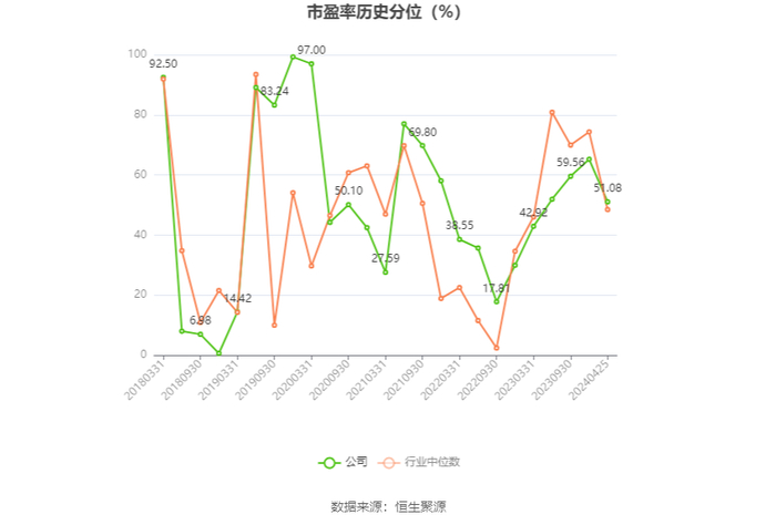 市盈率为负时,不显示当期分位数,会导致折线图中断。