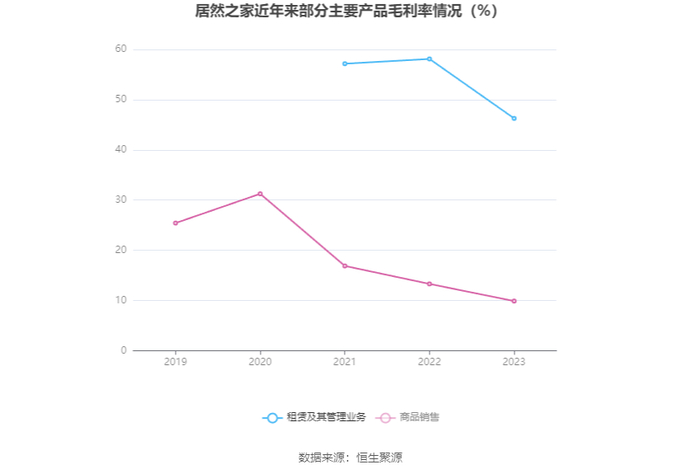分产品看,租赁及其管理业务、商品销售2023年毛利率分别为46.27%、9.88%。