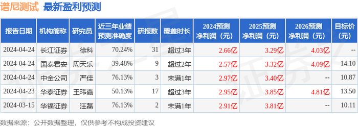 最新盈利预测明细如下: