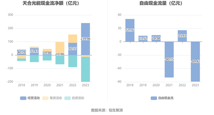 进一步统计发现,2023年公司自由现金流为-89.42亿元,上年同期为25.93亿元。