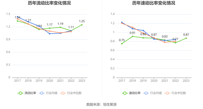 2023年,公司流动比率为1.25,速动比率为0.87。