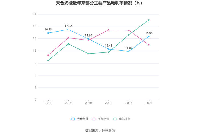 分产品看,光伏组件、系统产品、电站业务2023年毛利率分别为15.54%、13.46%、19.59%。