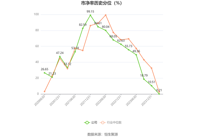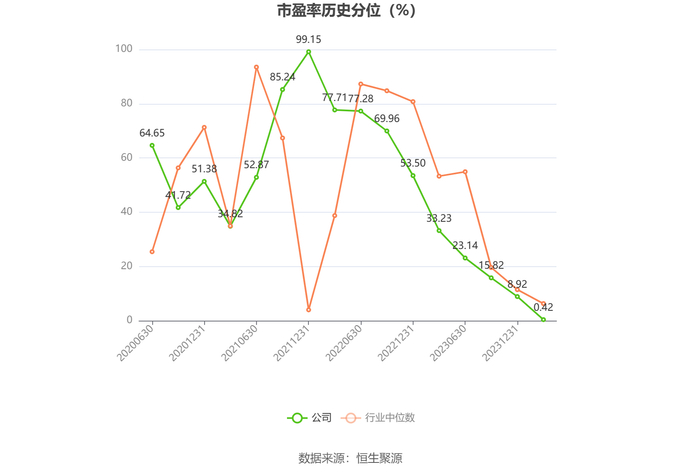 市盈率为负时,不显示当期分位数,会导致折线图中断。