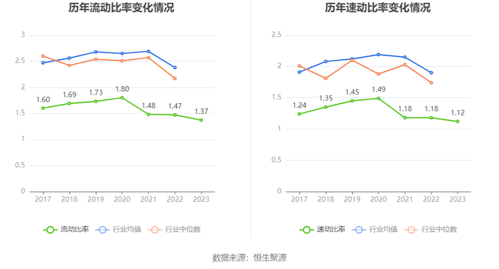 2023年,公司流动比率为1.37,速动比率为1.12。