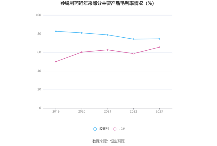 分产品看,贴剂、胶囊剂、片剂2023年毛利率分别为75.68%、74.66%、65.62%。
