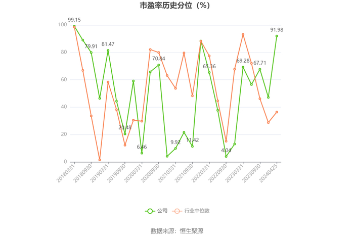 市盈率为负时,不显示当期分位数,会导致折线图中断。