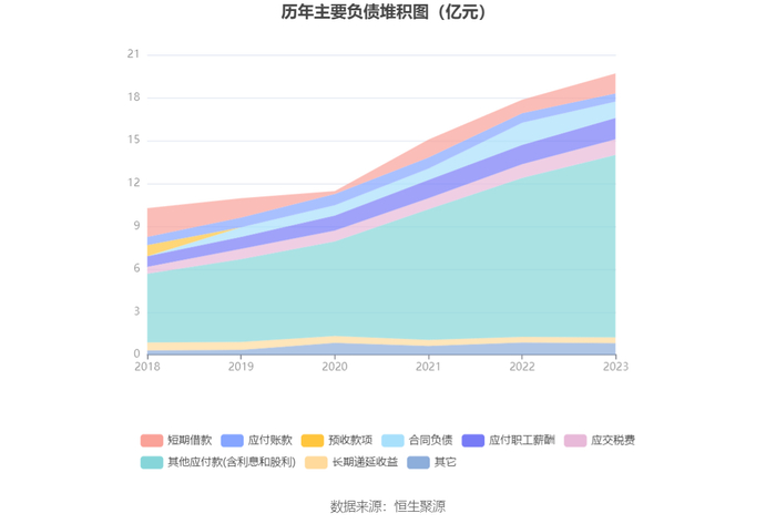负债重大变化方面,截至2023年年末,公司其他应付款(含利息和股利)较上年末增加14.81%,占公司总资产比重上升1.16个百分点;短期借款较上年末增加50.54%,占公司总资产比重上升0.80个百分点;合同负债较上年末减少25.55%,占公司总资产比重下降1.14个百分点;应交税费较上年末增加15.19%,占公司总资产比重上升0.11个百分点。