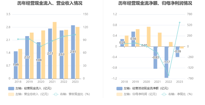 在偿债能力方面,公司2023年年末资产负债率为10.60%,相比上年末上升0.64个百分点;有息资产负债率为1.85%,相比上年末上升0.97个百分点。