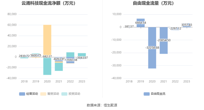 进一步统计发现,2023年公司自由现金流为3057.43万元,上年同期为-2297.12万元。