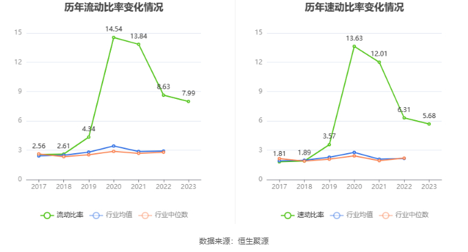 2023年,公司流动比率为7.99,速动比率为5.68。
