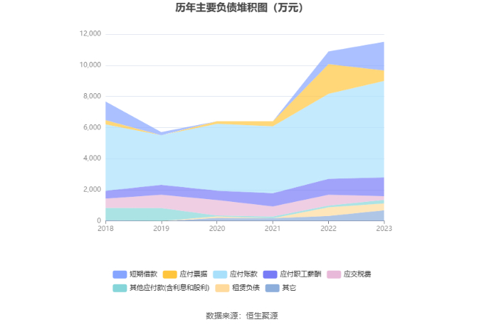 2023年,公司期间费用为1.07亿元,较上年同期增加1448.13万元;期间费用率为37.77%,较上年同期上升3.09个百分点。其中,销售费用同比增长53.96%,管理费用同比增长10.14%,研发费用同比增长6.09%,财务费用由去年同期的-108.40万元变为-22.25万元。