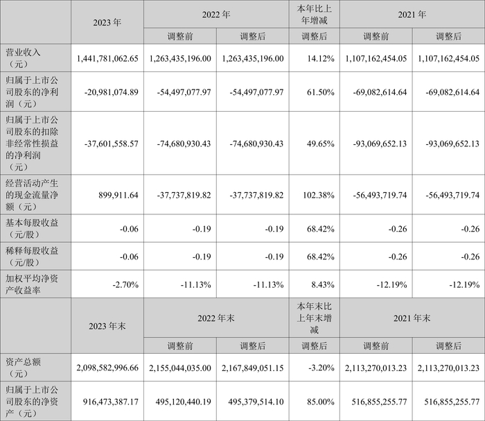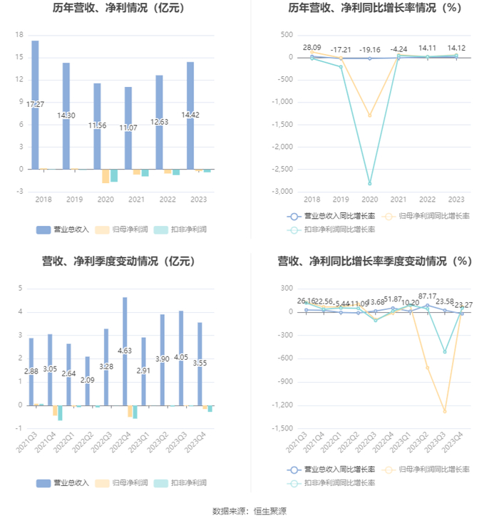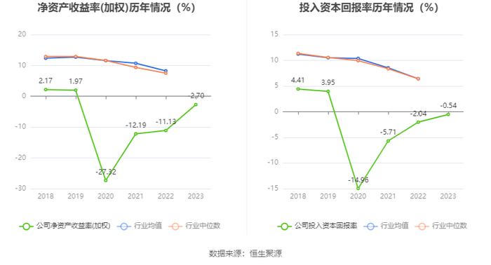数据显示,2023年公司加权平均净资产收益率为-2.70%,较上年同期增长8.43个百分点;公司2023年投入资本回报率为-0.54%,较上年同期增长1.50个百分点。