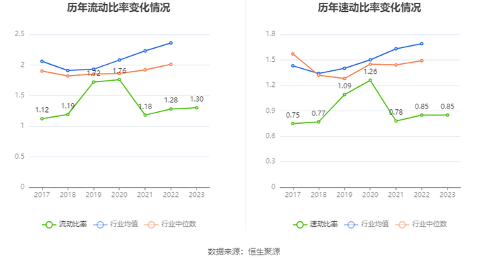 2023年,公司流动比率为1.30,速动比率为0.85。