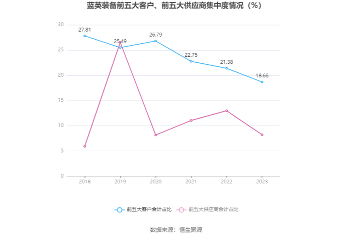 报告期内,公司前五大客户合计销售金额2.69亿元,占总销售金额比例为18.66%,公司前五名供应商合计采购金额0.76亿元,占年度采购总额比例为8.20%。
