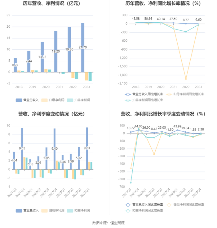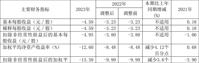 数据显示,2023年公司加权平均净资产收益率为-12.60%,较上年同期下降4.12个百分点;公司2023年投入资本回报率为-8.72%,较上年同期下降0.71个百分点。