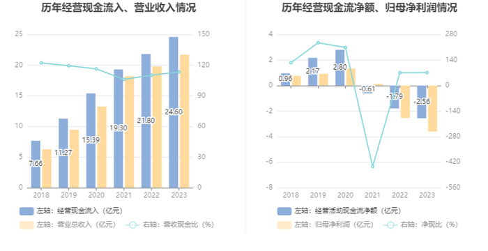 进一步统计发现,2023年公司自由现金流为-2.98亿元,上年同期为-3.51亿元。