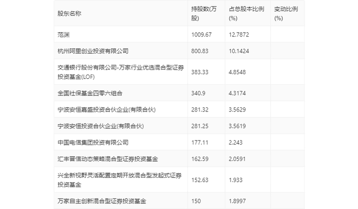 年报显示,2023年年末公司十大流通股东中,持股最多的为范渊,占比12.79%。十大流通股东名单相比2023年三季报维持不变。在具体持股比例上,宁波安恒嘉盛投资合伙企业(有限合伙)、宁波安恒投资合伙企业(有限合伙)、汇丰晋信动态策略混合型证券投资基金持股有所下降。