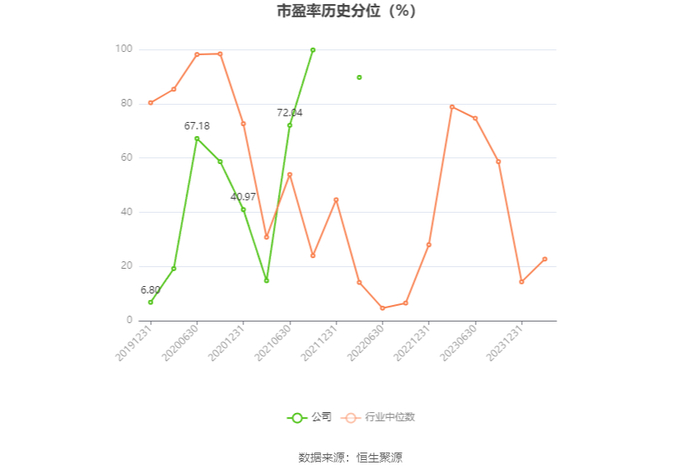 市盈率为负时,不显示当期分位数,会导致折线图中断。