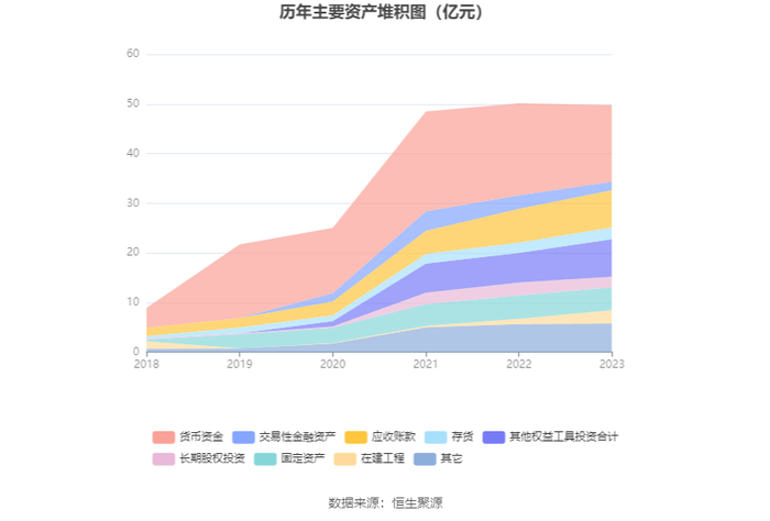 资产重大变化方面,截至2023年年末,公司货币资金较上年末减少16.79%,占公司总资产比重下降5.98个百分点;其他权益工具投资合计较上年末增加26.82%,占公司总资产比重上升3.29个百分点;在建工程较上年末增加150.12%,占公司总资产比重上升3.26个百分点;交易性金融资产较上年末减少37.64%,占公司总资产比重下降2.03个百分点。