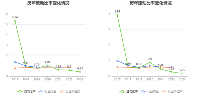 2023年,公司流动比率为0.43,速动比率为0.19。