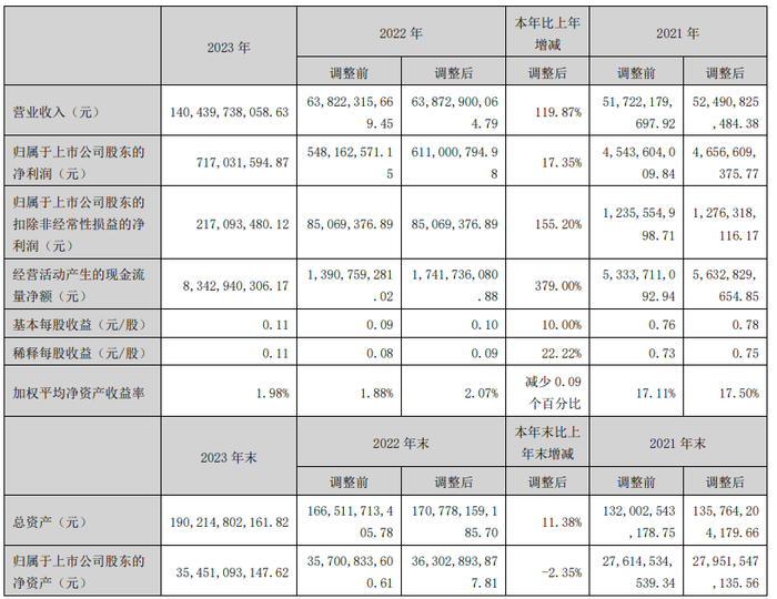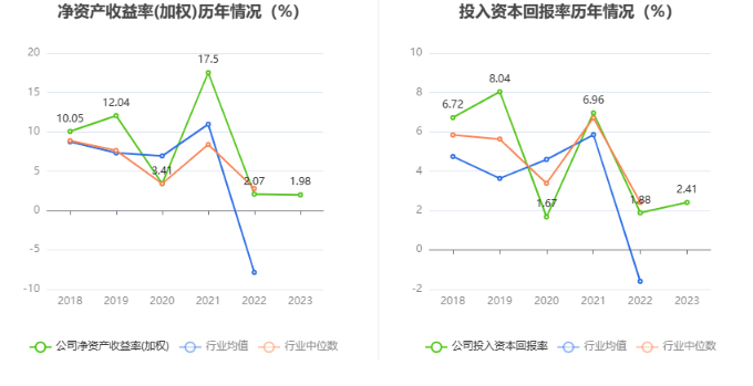 数据显示,2023年公司加权平均净资产收益率为1.98%,较上年同期增长0.09个百分点;公司2023年投入资本回报率为2.41%,较上年同期增长0.53个百分点。