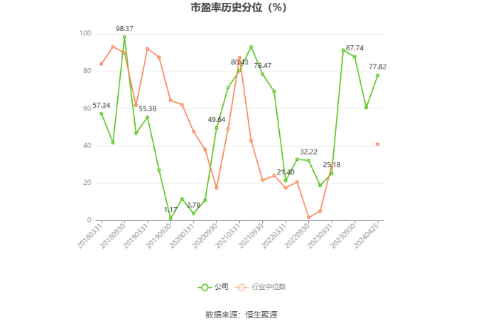 市盈率为负时,不显示当期分位数,会导致折线图中断。