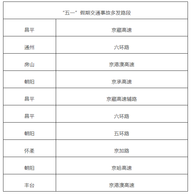 结合近5年数据,北京交管部门公布“五一”假期交通事故多发路段。