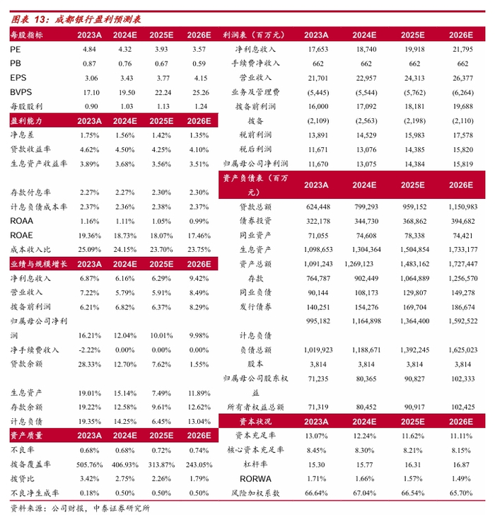 详解成都银行2023年报&2024一季报:净利润保持稳健增长,资产质量进一步提高【中泰银行·戴志锋/邓美君/乔丹】