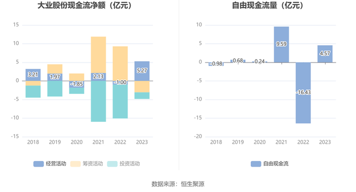 进一步统计发现,2023年公司自由现金流为4.57亿元,上年同期为-16.43亿元。