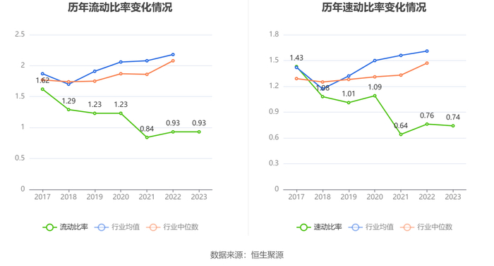 2023年,公司流动比率为0.93,速动比率为0.74。