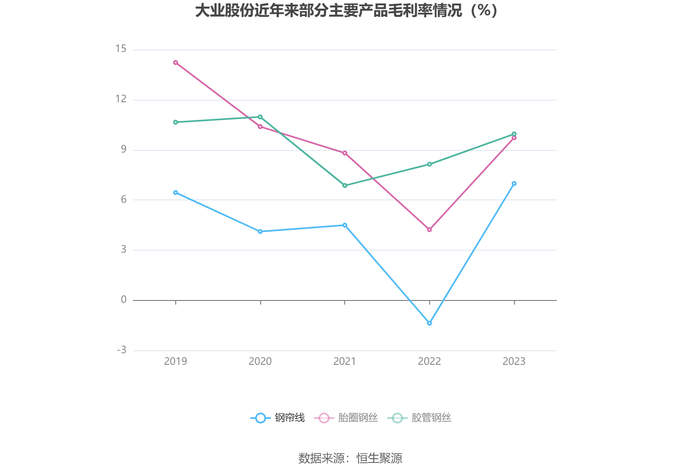 分产品看,钢帘线、胎圈钢丝、胶管钢丝2023年毛利率分别为6.99%、9.73%、9.95%。