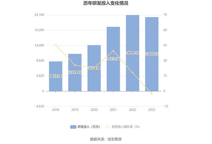 2023年全年,公司研发投入金额为2.35亿元,同比下降2.69%;研发投入占营业收入比例为4.22%,相比上年同期下降0.40个百分点。此外,公司全年研发投入资本化率为0。