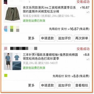 29.9元的回力日系白T、16.87元的余文乐同款工装短裤、8.8元的欧系重磅T恤。