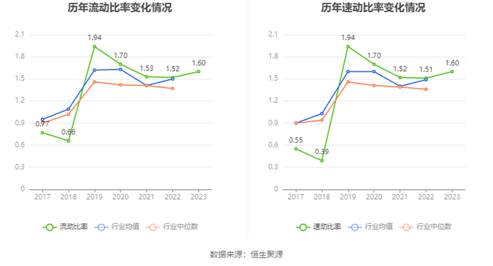 2023年,公司流动比率为1.60,速动比率为1.60。