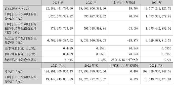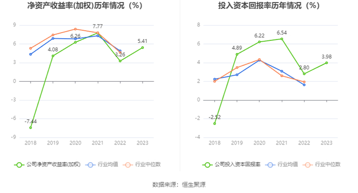 数据显示,2023年公司加权平均净资产收益率为5.41%,较上年同期增长2.15个百分点;公司2023年投入资本回报率为3.98%,较上年同期增长1.18个百分点。