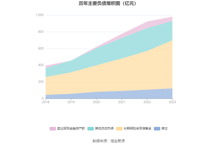 负债重大变化方面,截至2023年年末,公司长期保险合同准备金较上年末增加23.97%,占公司总资产比重上升6.55个百分点;其他流动负债较上年末减少15.01%,占公司总资产比重下降4.69个百分点;卖出回购金融资产款较上年末减少35.19%,占公司总资产比重下降2.63个百分点;其他应付款(含利息和股利)较上年末增加36.01%,占公司总资产比重上升0.83个百分点。
