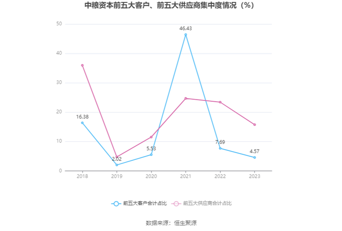 报告期内,公司前五大客户合计销售金额10.12亿元,占总销售金额比例为4.57%,公司前五名供应商合计采购金额13.64亿元,占年度采购总额比例为15.75%。