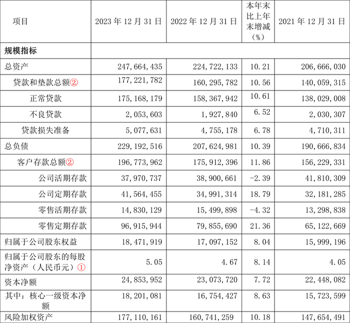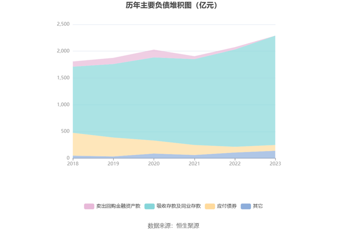 负债重大变化方面,截至2023年年末,公司吸收存款及同业存款较上年末增加12.40%,占公司总资产比重上升1.61个百分点;向中央银行借款较上年末增加76.53%,占公司总资产比重上升1.24个百分点;拆入资金较上年末减少4.18%,占公司总资产比重下降0.28个百分点;应付债券较上年末增加1.00%,占公司总资产比重下降0.40个百分点。