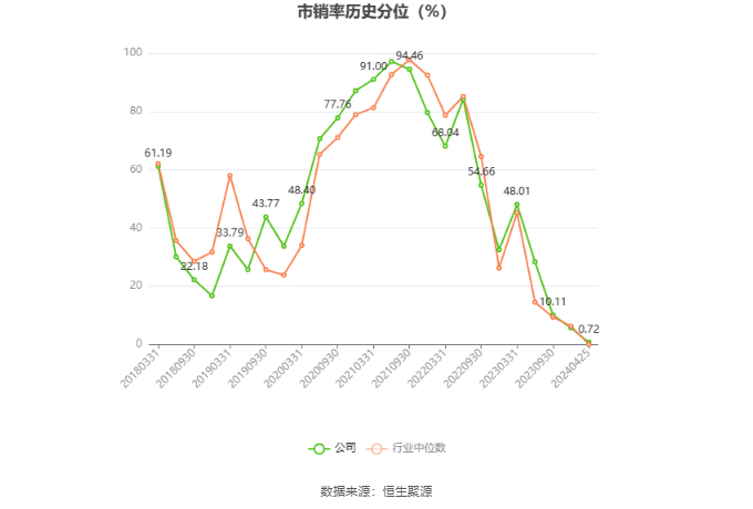 2023年,公司毛利率为20.25%,同比上升2.06个百分点;净利率为6.59%,较上年同期下降3.97个百分点。从单季度指标来看,2023年第四季度公司毛利率为6.94%,同比下降11.38个百分点,环比下降15.94个百分点;净利率为-25.56%,较上年同期下降34.79个百分点,较上一季度下降38.22个百分点。