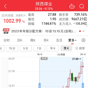 有人算过一笔账,2023年陕西煤业的分红方案是每股派发2.18元,而2018年至2022年每股分红已经达到5.68元,意味着陕西煤业最近6年的分红已经覆盖了2018年中的平均买入成本。