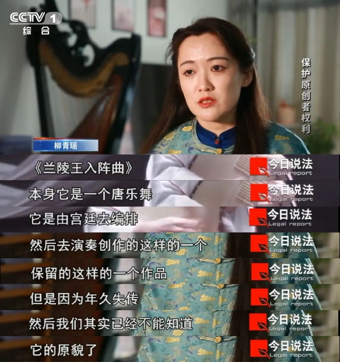 柳青瑶(艺名)是一名音乐制作人,自幼学习琵琶。2022年7月,她收到不少朋友转发的一个视频,这个视频是一档舞蹈类综艺节目片段,该片段所使用的背景音乐混用了《兰陵王入阵曲》和《听!秦王破阵乐!》两首曲子的部分内容。但在使用之前,节目组并没有征得创作者柳青瑶的同意。